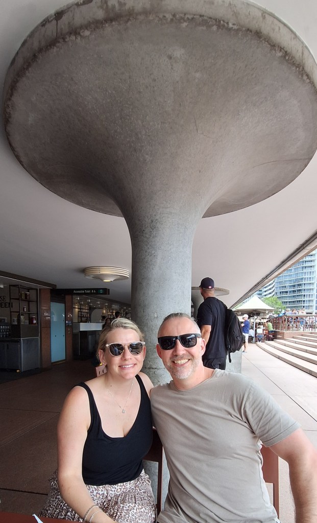 Actually, we were underneath the Opera House, quite a daft place to sit, in retrospect. 161,000 tonnes of bricks and tiles above us, all held up by this pillar.