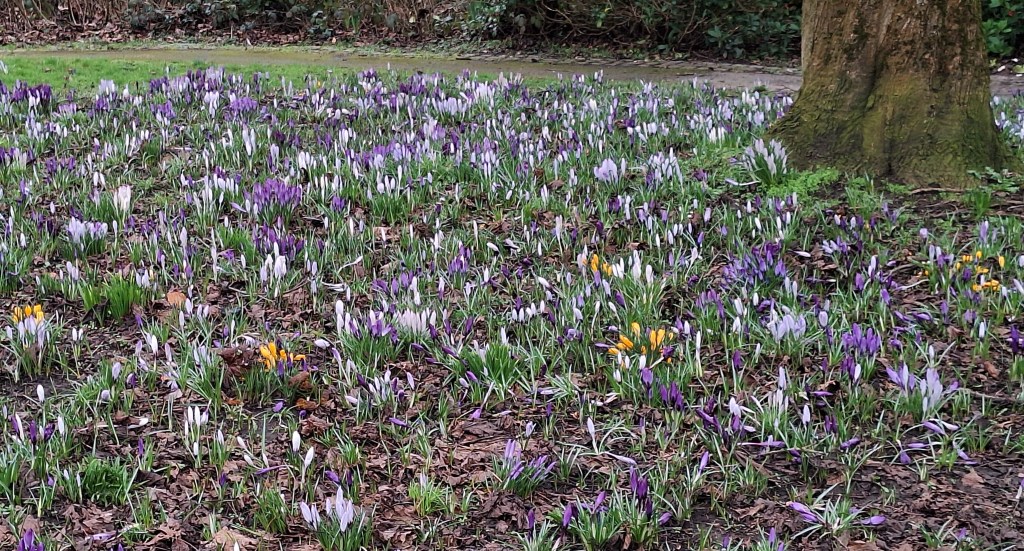 When I did venture out, though, I was very happy to see early signs of Spring. A bed of crocuses adorns the village green.