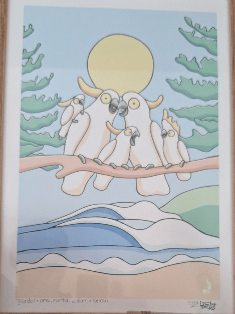 Yes, we are officially a pendemonium of cockatoos! This picture was drawn by friends of Helen and Brent and I was able to pack it in my case to take home.