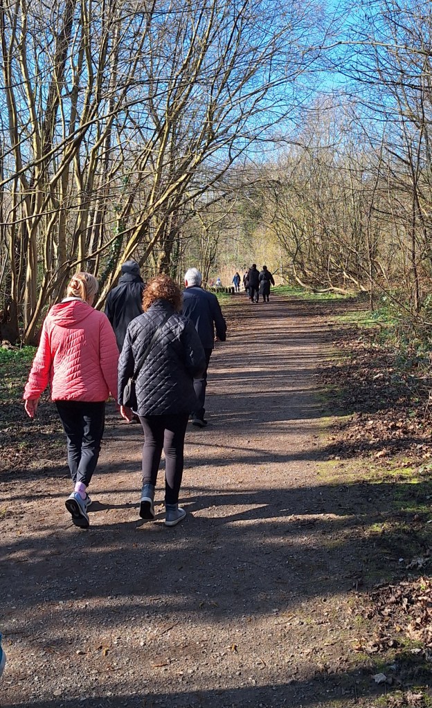 After being tortured (slight exaggeration) again by the dental hygienist, I joined the Wednesday walking group. There were 22 of us on this occasion, the first noticeably warm day since I returned.