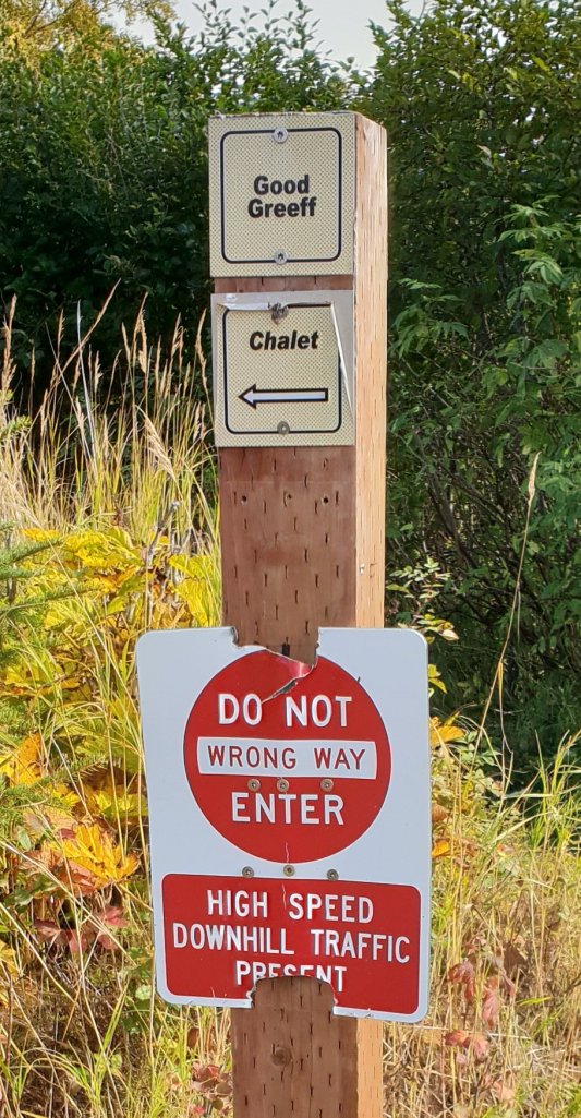 Good Greeff, another unusual sign. And no, on this occasion, there were no high-speed skiers or mountain bikers coming our way.