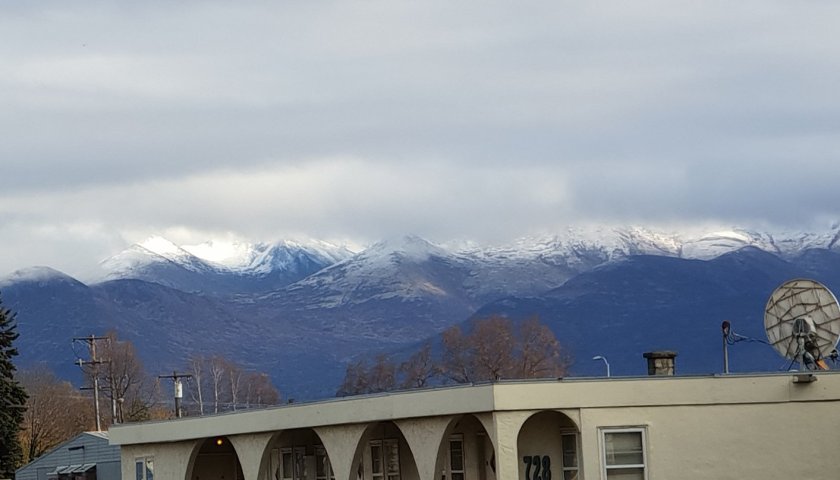 The snow on the mountains is a few more inches lower down. It’s now officially a race: does the snow reach Anchorage before we leave? Or will we have to beg, borrow, buy or steal snow shoes? Watch this space!