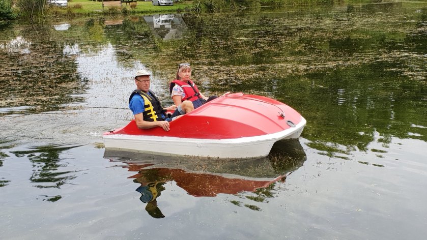 Liesel and I took out a double pedal-boat, as did Pauline and Andrew. It was gentle exercise, we enjoyed watching the fishes, including eels, which the boat-hire man fed by his little jetty. There were kayaks available, but having fallen out of one such in Sydney Harbour a few years ago, Liesel wanted me to stay dry this time.