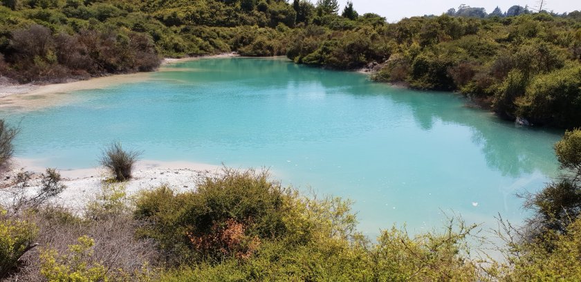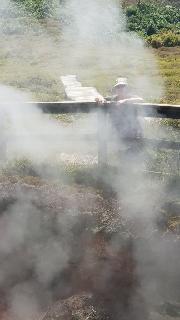 We went for a walk a little further afield to be rewarded with the sights and smells of a Green Lake, bubbling mud pools and a dragonfly (that was too fast for the camera) who was about to burn his feet on super-heated water. 140°C as it bubbles and sizzles up from below.