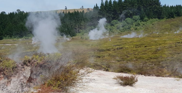We walked around for about 45 minutes under the beating Sun. Steam was venting, there was a very slight sulphurous smell. I could tell I was wearing the wrong hat because the Sun had full access to the back of my neck. Did I apply sunblock? Well, no, of course not. It was in my bag and I’d left that behind.