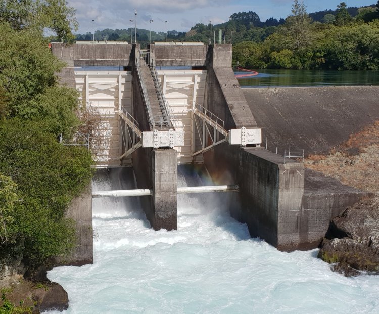 There is a dam at Aratiatia Rapids and if you look closely at the picture, you can just make out rainbow colours in the spray. As ever, not as obvious as it was in real life.