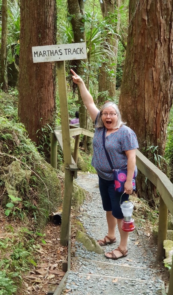 We heard plenty of birdsong but didn’t see any exciting wildlife. Except for this lizard. And even he wasn’t real. We did come across this sign. Martha is our much missed granddaughter back at home, but this was named for Jess’s grandmother!