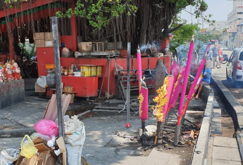 Stickers plus religious artefacts plus mobile phone plus everyday dirt all add to the adventure.
