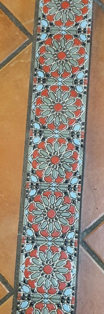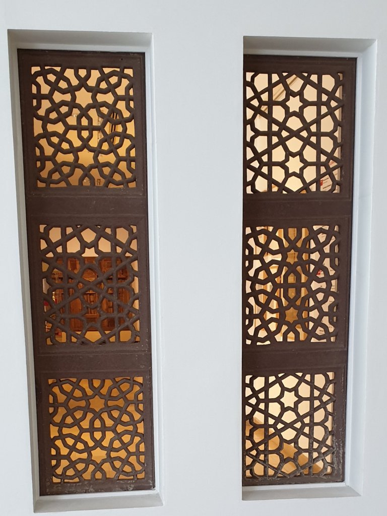 The ceramic plate has a colourful geometric design, definitely Islamic influence here.