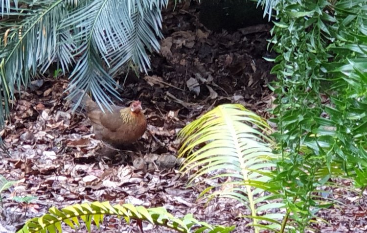 As we turned one corner, we saw a bird run across the path into the bushes. It wasn’t going to be a kiwi this time, obviously, but we thought it might be something exotic and interesting. As I watched, in the shadow under the bush, I realised the bird was feeding three chicks, clearing back the leaf litter, letting the little ones peck at their own food. Only when she emerged from the shadows did we realise how exciting our find wasn’t.