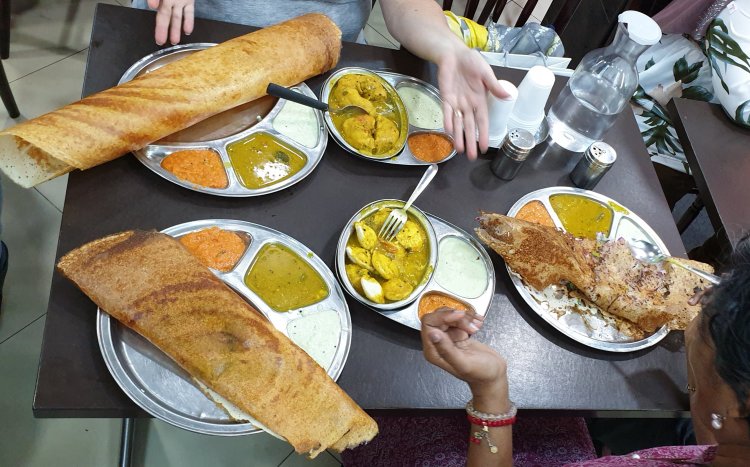 Jyoti makes no bones about the fact that she is here primarily for the food. Liesel goes bananas at the mention of food too. Finding somewhere to eat is as easy as pie. Our first breakfast was Indian: dosa masala. Huge. And a mango lassi. For breakfast.