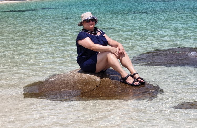 I walked along the beach with bare feet but next time, with Liesel, we wore sandals. The sand’s ok, if a little hot in places, but the coral can be quite sharp.