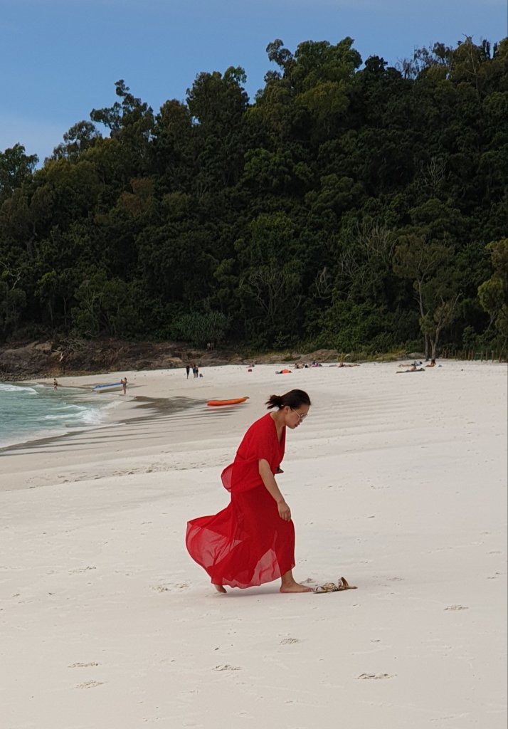 By the time we reached Hyam’s Beach, a little later in the day, it was a colder breeze again. Neil had told us earlier that Hyam’s Beach claims to have the purest white sand in the world.