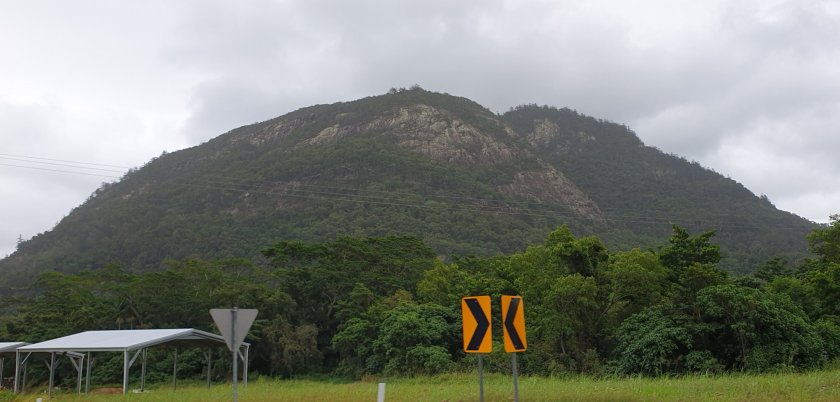 To prevent landslides, there are a few places by the A1 (and presumably elsewhere) where they’ve sprayed concrete all up the hill, a common sight in Malaysia. But here, the colour they’ve chosen here is a better match to the background earthy colours.