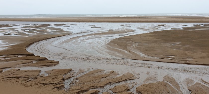 I tried to make friends with the oystercatchers, but they weren’t interested. I was intrigued by the structure of the beach’s surface here, though: usually you see roughly parallel lines in the sand, whether from waves or from wind.