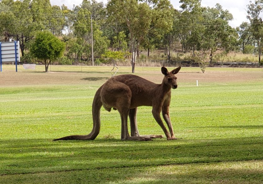 And if that wasn’t enough, just along the road, we passed by a house with several kangaroos in the front garden. These were not at all timid: in fact, they seemed disappointed that I didn’t offer them any food. But I swear the one at the front rolled his eyes when I asked, “What’s up, Skip?”