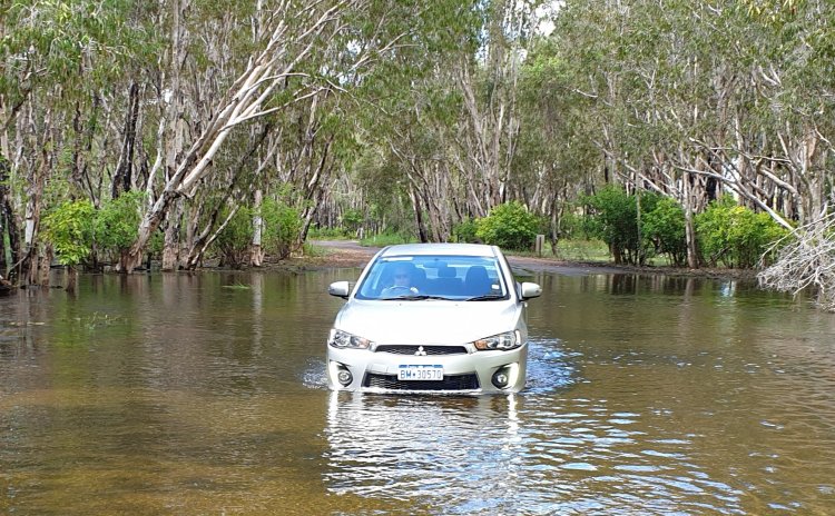 One of the places we really wanted to visit was Ubirr, to look at the ancient Aboriginal rock paintings. As we drove along the road, again we passed many Floodway signs. We came across our first flooded road and drove through easily enough, the water wasn’t too deep.