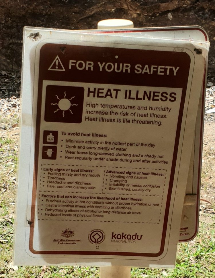 And if there wasn’t enough to worry about, snakes, spiders, crocodiles, floods, mosquitoes, we also have to take care to avoid Heat Illness.