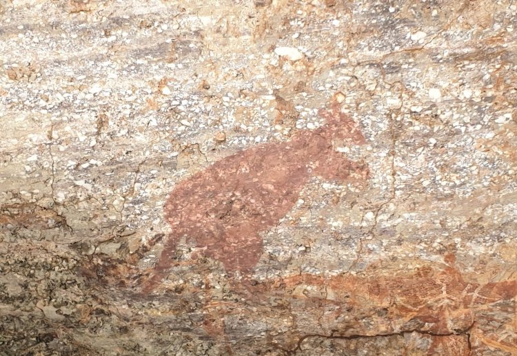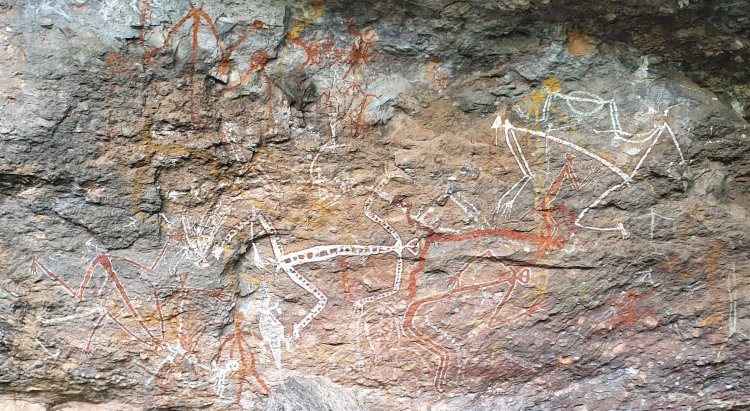 A lot of the artwork was painted on walls underneath overhanging rocks, so sheltered a bit from the elements. When an overhanging rock looks dangerous, they prop it up with the thinnest tree trunk they can find.