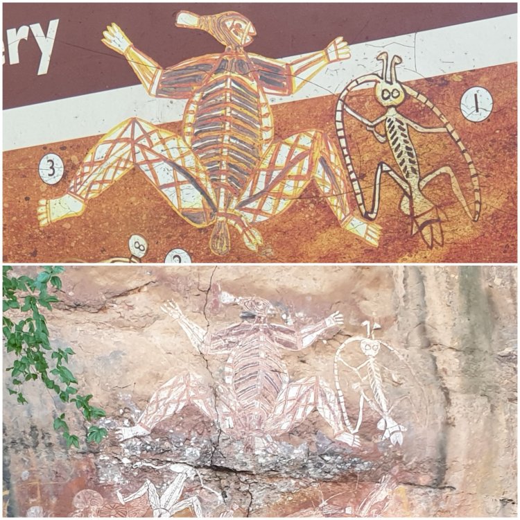Namanjolg’s Feather is a small rock perched high up. It’s the feather that his sister took from his headdress after they had broken the incest laws. She placed it here to show what she had done. Later, she became the Rainbow Serpent. Even on the sign depicting the story, the poor fella’s name is spelt two different ways. As if he wasn’t suffering enough already by having a boulder in his hat, euphemistically referred to as a feather.