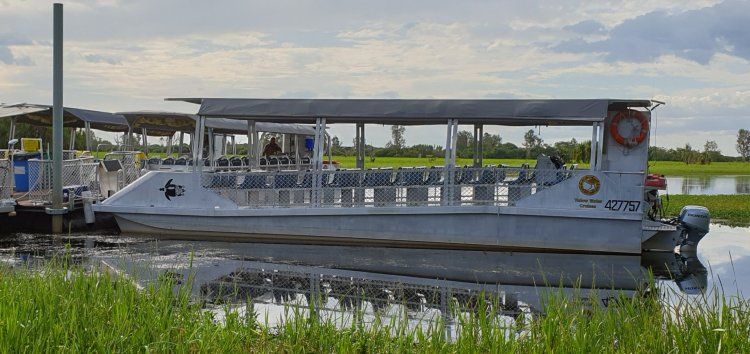 There are boat trips onto Yellow Water, and we booked one straightaway for this evening, ending at around sunset. So we only had a short time in our room to recharge ourselves and recharge the phone battery before joining over 20 other visitors in two buses to the jetty.