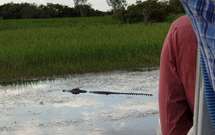 How did Yellow Water get its name? I recalled the book titles we made up at school ‘Vegetarian Breakfast’ by Egbert Nobacon for instance. Or ‘Yellow Waters’ by I P Daly. Well, from experience, when I’m dehydrated, I produce a lot of yellow water and I’m sure that’s quite common in these hot and humid places. But that’s not the origin of this placename. Buffalo were introduced here about two hundred years ago and they had the habit of eating the marsh grass, then walking around and compacting the clay so it was impossible for anything else to grow. When the rains came, they washed the clay away, turning the water yellow.