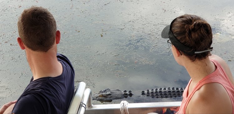 The boat looked strong enough, the sides were very strong metal mesh and there was no way we could pester the crocodiles through that.
