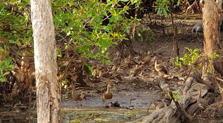 Whistling ducks gathered on the bank, and whistled a merry, if warning, tune as we sailed on by. Their only fault is in being the same colour as the sand, so quite hard to spot.