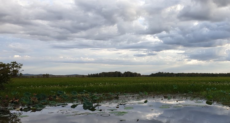 The East Alligator River is the only river system in the world wholly enclosed in a World Heritage Site National Park. So, in theory, it has the cleanest water. Unfortunately, some fishing people don’t care, and beer cans have been seen floating by. But the main problem now is with salvinia, a fast growing weed that is in danger of blocking the waterway. It was once sold as decoration for domestic aquariums and it’s thought that someone just poured the whole lot down the drain one day. They’re trying to combat it with a weevil imported from South America that eats salvinia, and only salvinia. I would have thought that after the cane toad episode, Aussies would be very reluctant to import another biological form of pest control. Salvinia fights the lotus lilies for resources, but I think we all agree which looks better.