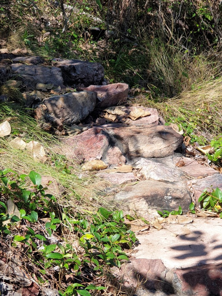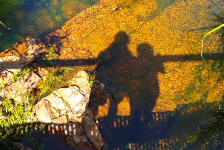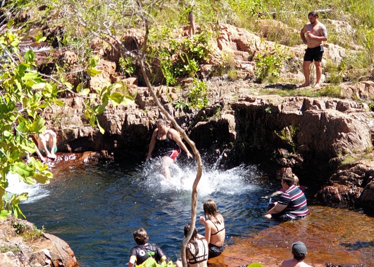 Buley Rockhole is a series of small, round rock pools connected by cascades. It’s closer to Batchelor than Wangi Falls but mostly, we followed the same road. It felt even hotter today than yesterday, although the car’s thermometer suggested otherwise.