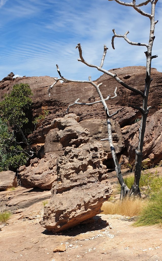 Namanjolg’s Feather is a small rock perched high up. It’s the feather that his sister took from his headdress after they had broken the incest laws. She placed it here to show what she had done. Later, she became the Rainbow Serpent. Even on the sign depicting the story, the poor fella’s name is spelt two different ways. As if he wasn’t suffering enough already by having a boulder in his hat, euphemistically referred to as a feather.