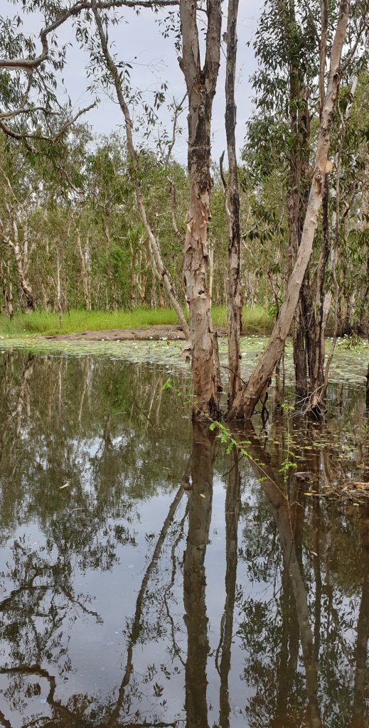 Later on, we passed a gorgeous little billabong, and Liesel requested this photo, taken from a low angle, presumably so that the croc wouldn’t have to jump so high to eat me.