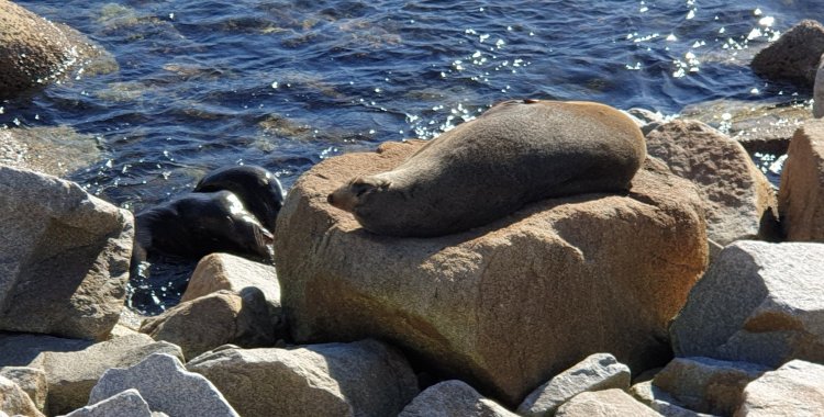 The walk along the breakwater was enjoyable, but there was a slight smell. Then we saw why. Seals were basking on the rocks, soaking up the Sun, not at all bothered by us two or the handful of other visitors.