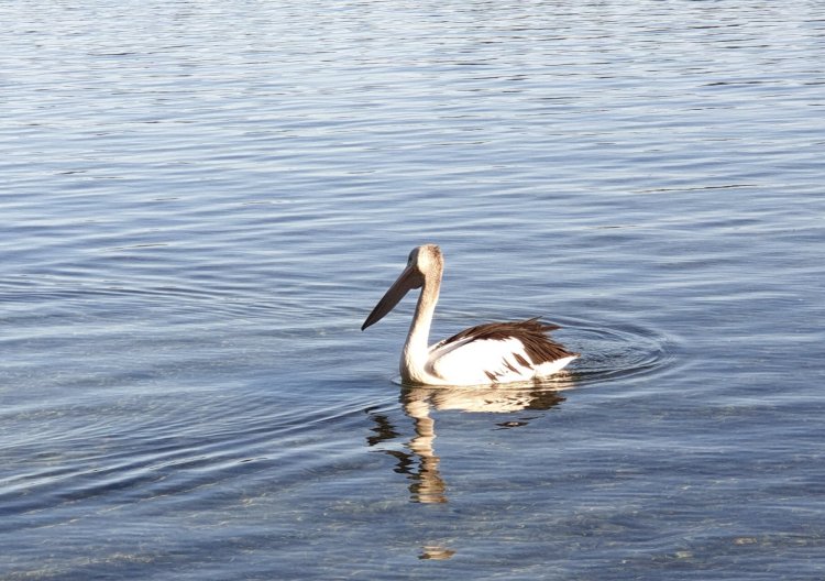 The pelican was just swimming around and around for the sheer pleasure of it, he wasn’t looking for food or a mate, he was just having a good time paddling around in the water.