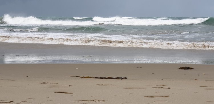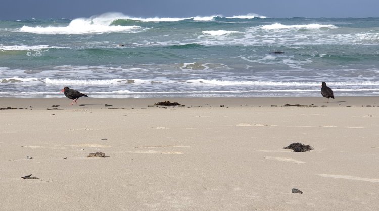 Beach with oyster catchersAnd without … but look at those waves …