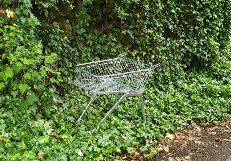 Liesel and I took advantage of a small hiatus in the late April showers and walked to Didsbury. We stayed away from the main roads as much as possible, venturing along narrow, overgrown, nettle-infested, sometimes muddy paths. We knew we were back in Manchester when we found a shopping trolley nowhere near its supermarket.