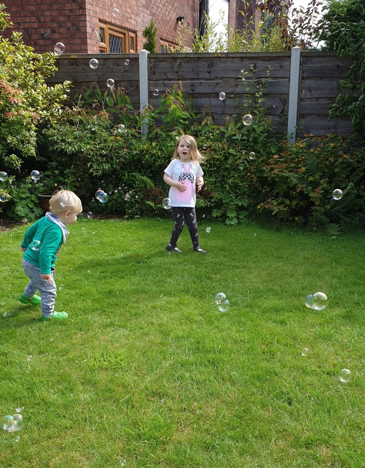 We enjoyed playing with Martha, William and bubbles in the garden. Wimbledon tennis championships begin any day now, and we were in training for that too.