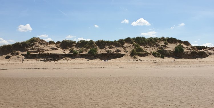 From the car park, you walk over the dunes onto the beach. Most people then turn right for some reason, or just plonk themselves down at the earliest opportunity. We turned left and found plenty of space. Yes, we could see and hear other people, but we found a good spot to sit down for our picnic.