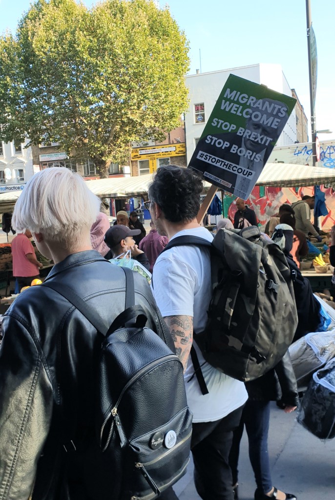 EU blue and gold smoke bombs were let off. Speeches were given which I couldn’t hear being right at the back. The chants were mainly “Stop the Coup” and “Boris, Boris, Boris, out, out, out”!