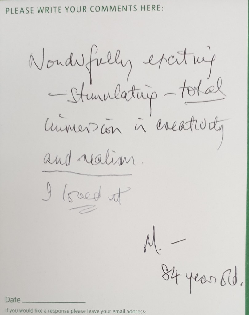 Back in the Tate, I spent some time in the drawing room. It’s actually the Bloomberg Connects Drawing Bar and you can have a go at drawing pictures on the screens which then get displayed and posted to Flickr. My drawing skills are on a par with my musical ability, but I enjoyed creating a special message for my beloved all those miles away.
