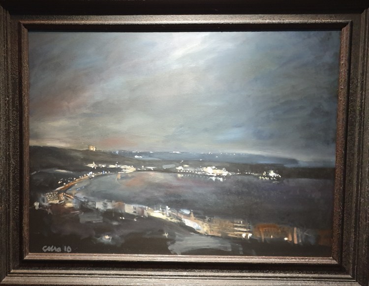 I didn’t walk to the casino, visible in the distance, but I found the sea again round the corner. St George’s Bay is, I’m sure, a very popular beach in Summer, but today, the only men sunbathing were wearing their business suits.