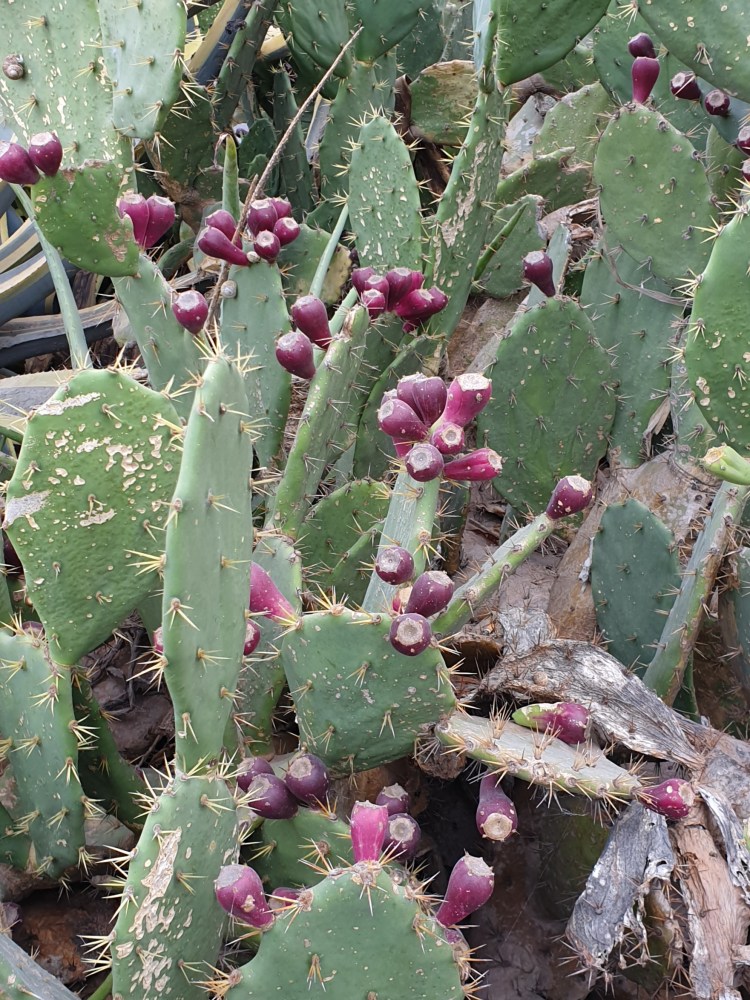 I was surprised the first time I saw cactuses growing here, just a week ago. But they’re all over the place. They’re prickly pears, imported from America, planted typically around fields to help reduce the force of the wind.