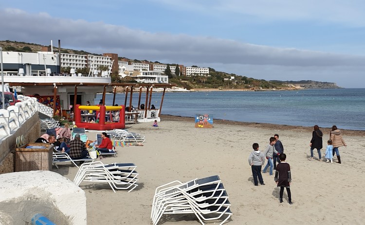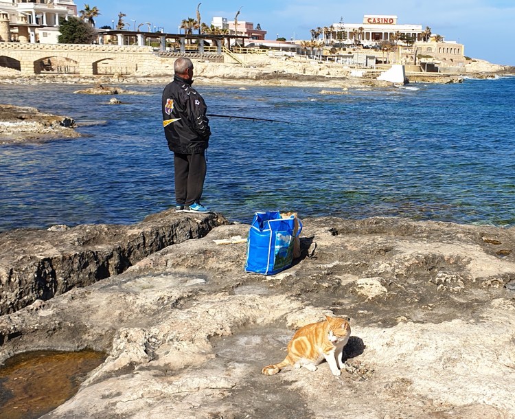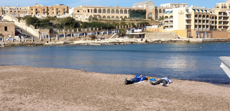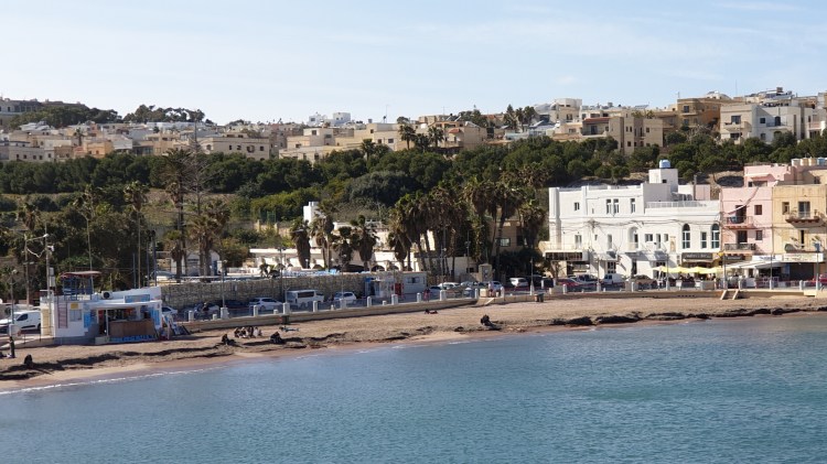 The walk to St George’s beach was interesting, through a largely residential area of St Julian’s. One of the main hobbies here seems to be standing around on street corners chatting and laughing or, at a pinch, sitting in a stationary car, maybe lurking, maybe waiting for someone.