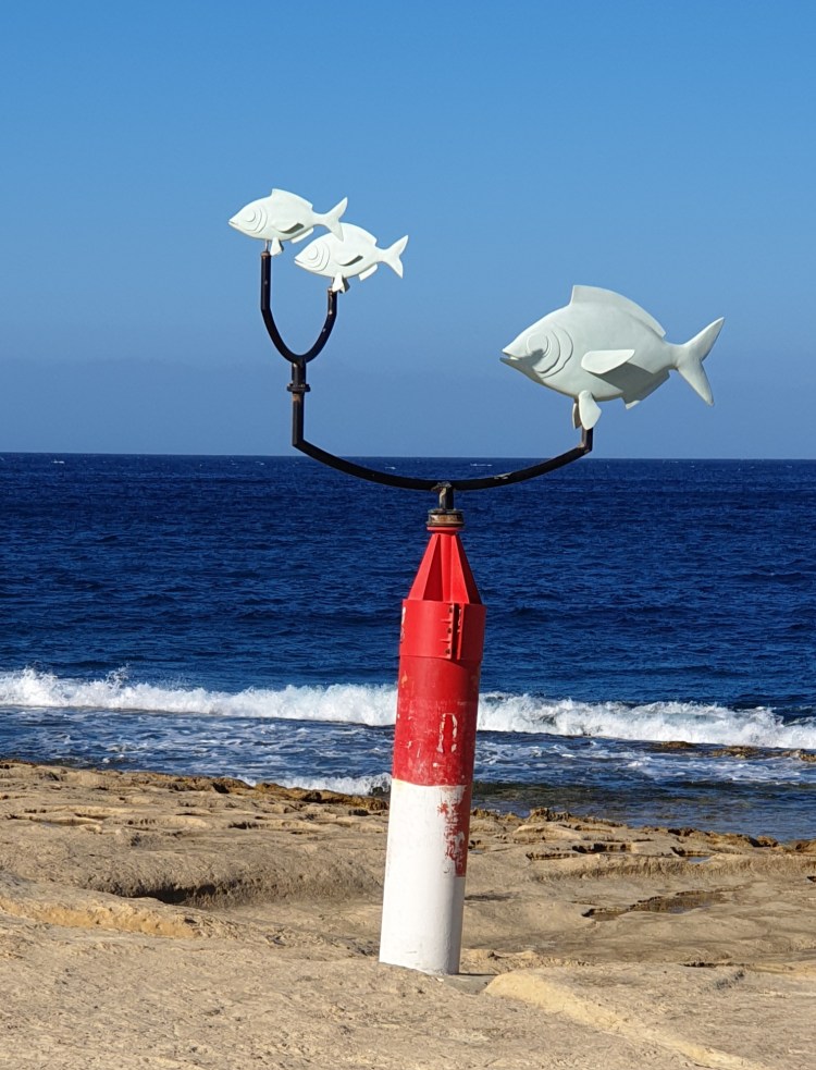 The ferry ride was short and sweet and we took our time walking back home from Sliema, a route that is very familar to us now. But, of course, we still see things that we’ve not noticed before. Have you seen those fish, Mick? What fish? Those fish. Oh, those fish!