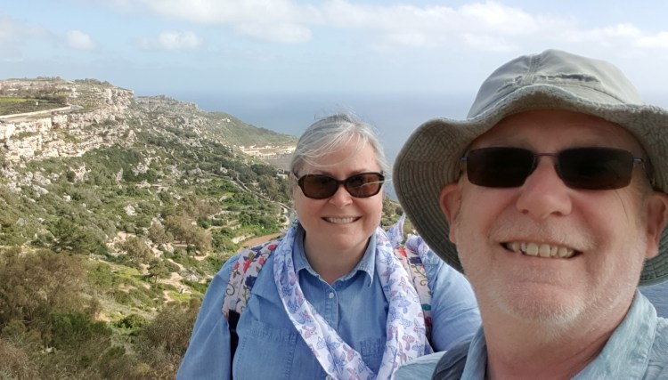 Even the wind hasn’t been enough to deter us from a lot of walking. Sometimes it’s a bus ride followed by a walk. I think it’s fair to say we’re not looking forward to going home to be greeted by Storm Jorge and its cold, wet and windy so-called weather. T-shirt, shorts and sandals are my dress code de jour here in Malta, and I can put up with the funny looks from the strange locals, no worries.