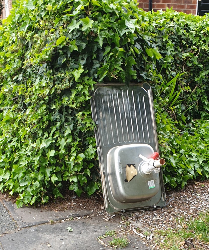 We did go out a couple of times to walk around the area, for some fresh air, for some exercise and to enjoy a hot, hot late May. It should be peaceful, but there was a lot of noise. Just up the road from us, someone was trimming a hedge and their friend was blowing the trimmings off the road and back into the hedge. Round the corner, someone was washing a car with a powerful powered hose. Up the road, there were men at work. Except they weren’t, they had downed tools for a welcome break.