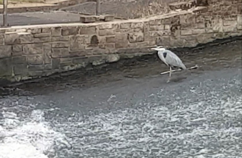 The robin often appears when we walk along this path. A bit later, we were walking by the river and we heard the sound of a creaky gate approaching. It was our old friend, the heron flying by and, if the passer-by (socially distanced of course) is to be believed, it nearly gave her a heart attack.