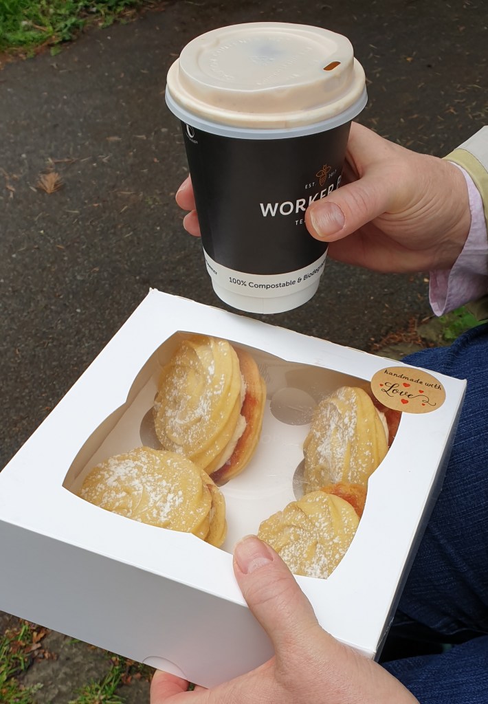 We visited The Northern Den for more coffee and Viennese whirls. The local council seem to be deterring people from sitting outside on park benches, sadly. They’d squirted tomato ketchup over them, and nobody wants to sit on that, thank you very much.