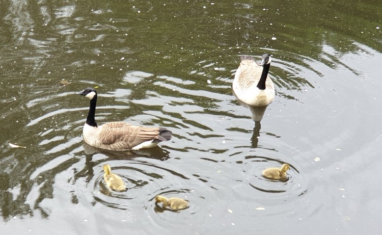 The duck family were nowhere to be seen, the geese have moved in instead.