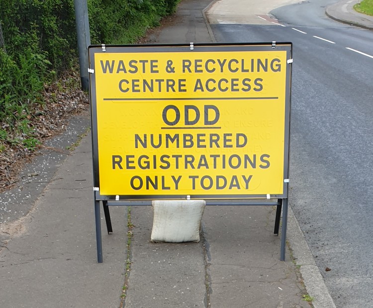 The recycling centre round the corner re-opened but they’re restricting its use is determined by vehicles’ regnos.